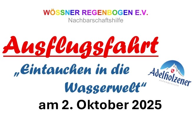 Der Wössner Regenbogen bietet – in Zusammenarbeit mit dem Seniorenbeauftragten – Tagesausflüge an und nimmt Reservierungen entgegen. Kontakt: info@woessner-regenbogen.de Tel. 08641 6994390