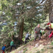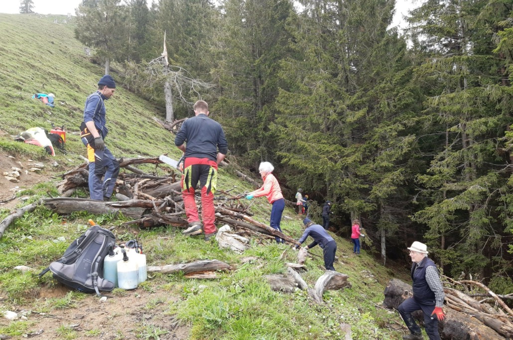 Gemeinsame Schwend- und Almpflegeaktion mit den Almbauern im Achental. Denn regelmäßige Schwendarbeiten sind wichtig für die Erhaltung der Almen.