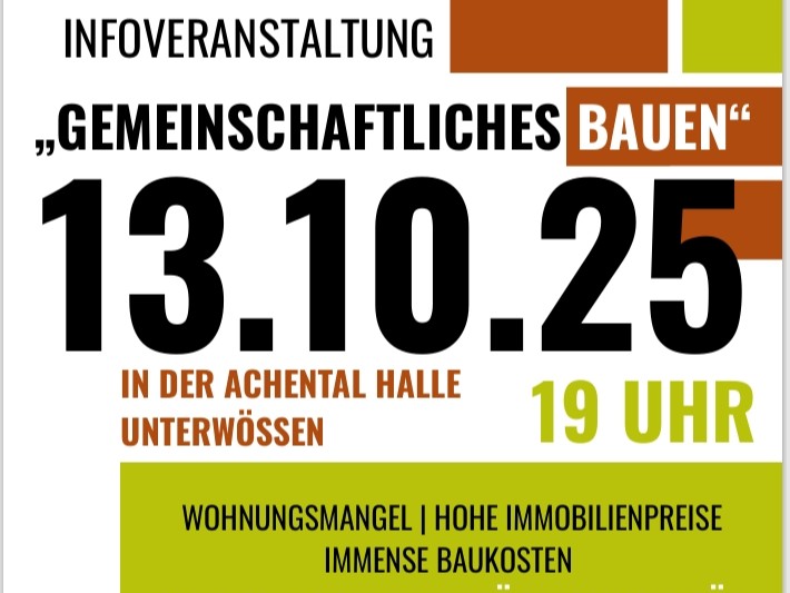 Eine öffentliche Veranstaltung informiert zum Thema gemeinschaftliches Bauen am Montag, 13. Oktober, 19 Uhr, in der Achentalhalle, Hauptstraße 71. Veranstalter sind die drei Gemeinden Marquartstein Reit im Winkl und Unterwössen.