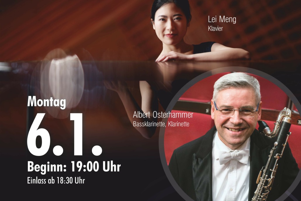 Lei Meng Klavier und Albert Osterhammer Bassklarinette, Klarinette. Mit Werke von Johannes Brahms und Bohuslav Martinu. Tickets auf www.ticketscharf.de und an der Abendkasse.