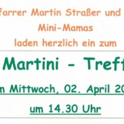 Martini-Treff-Taxi: Sie benötigen einen Fahrdienst zum Martini-Treff? Dann melden Sie sich gerne bei Regina Aberger: 0171/4584407